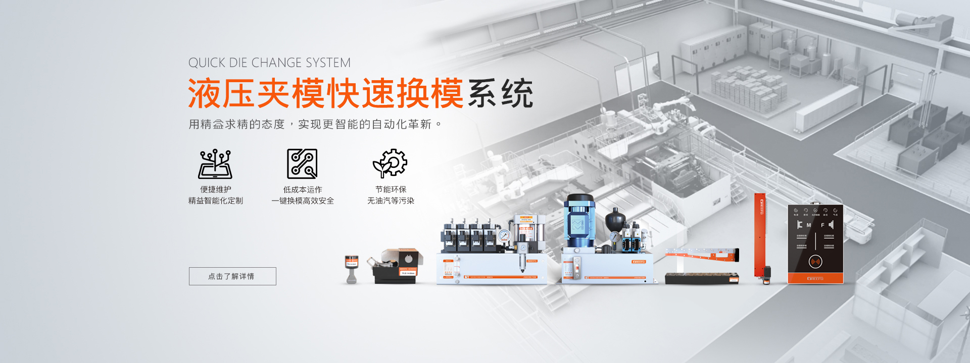 液壓快速換模系統(tǒng) 格萊富注塑機快速換模系統(tǒng)采用 TY 夾模器,以油壓驅動取代舊式固定夾的方式,不需要在模產過程中,短時間內輕易完成換模作業(yè),更省時省力。目前已在家電,汽車、機械等行業(yè)豐富應用
